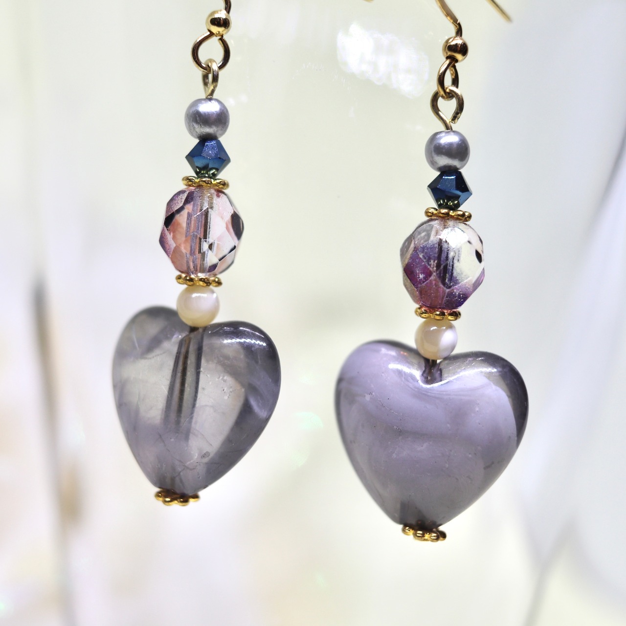 【イヤリング・ピアス】ハートビーズ・グレー(Y13)