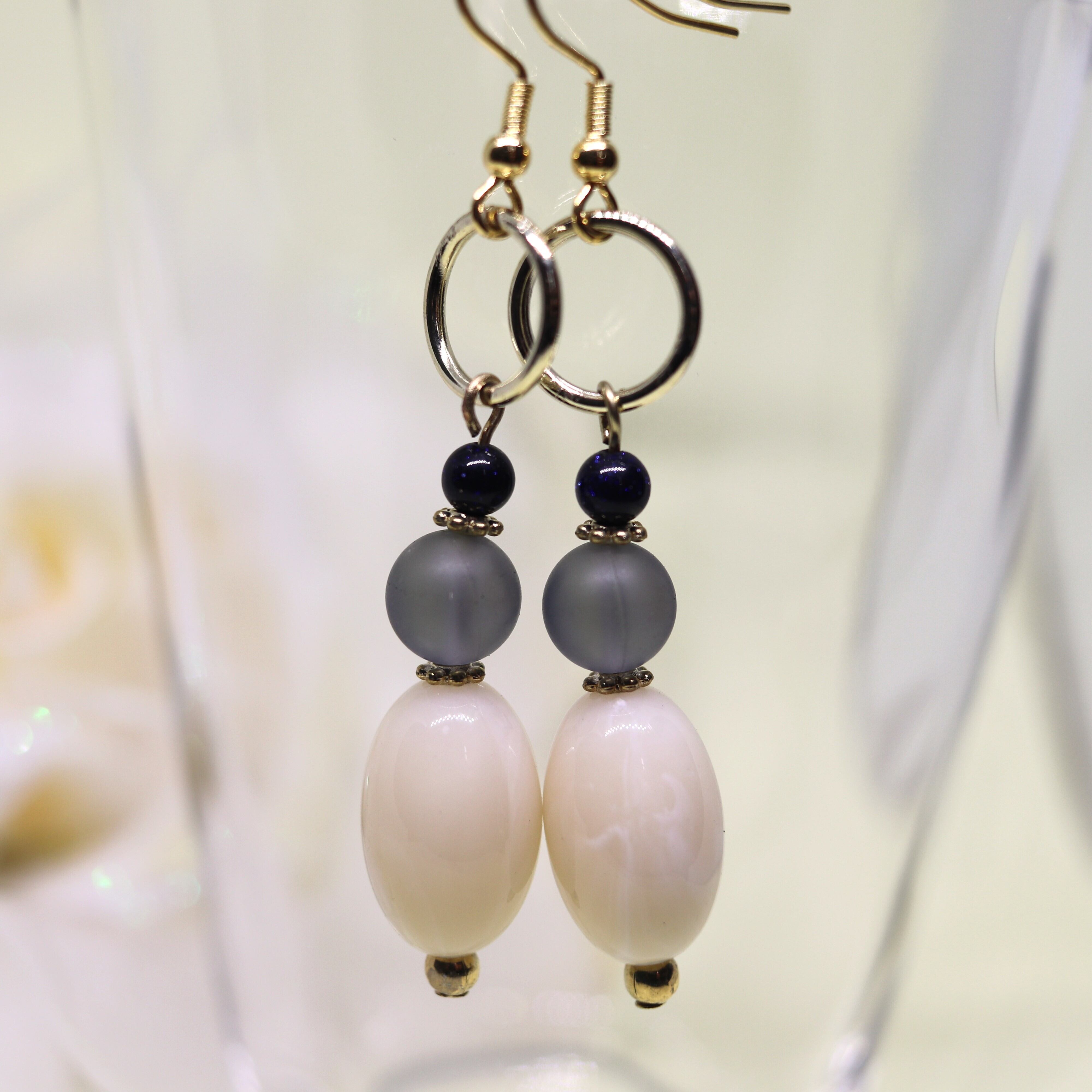 WH06【イヤリング・ピアス】ホワイト・ビーズ
