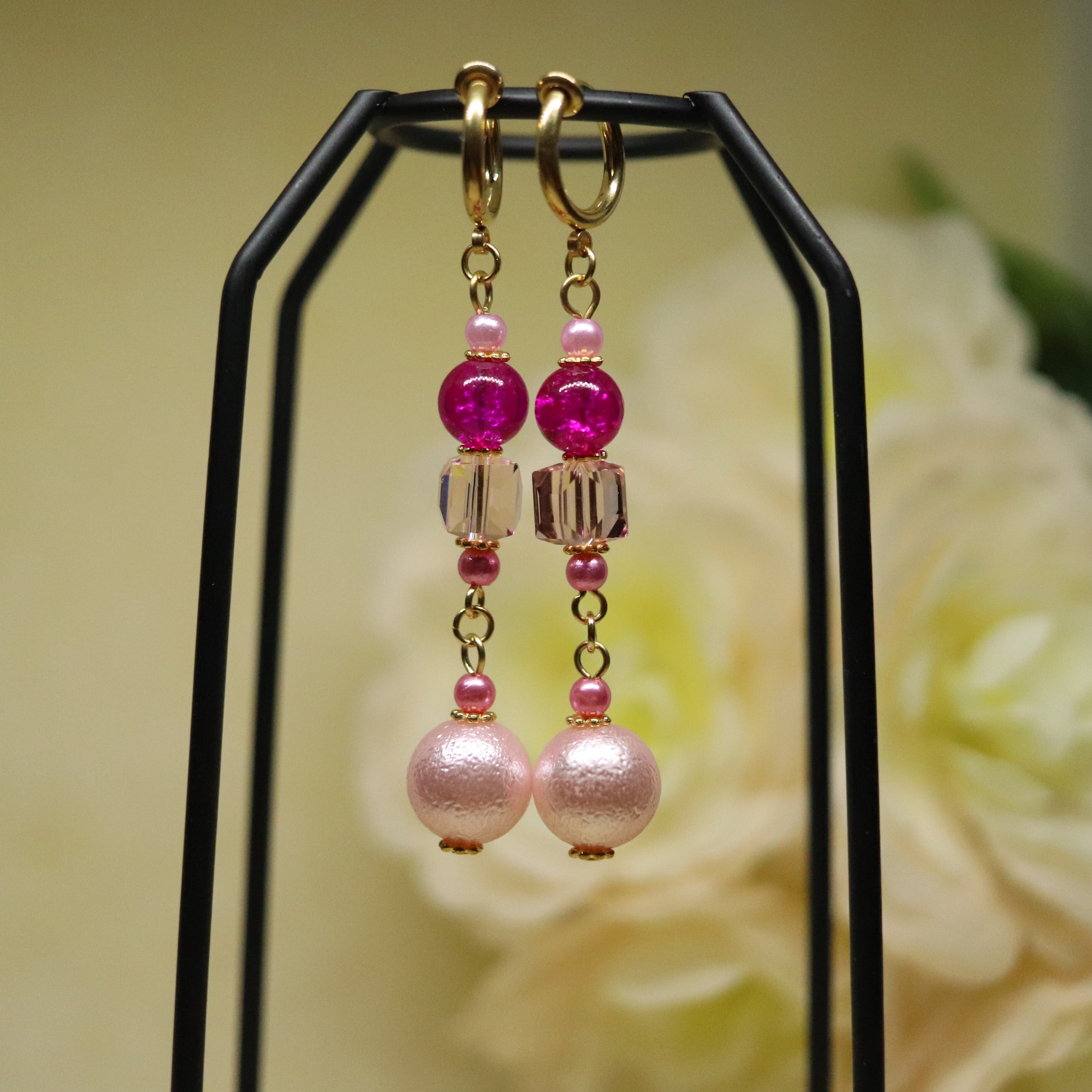 PL03【ピアス・イヤリング】パープルピンク・ビビットカラー・ガールズ