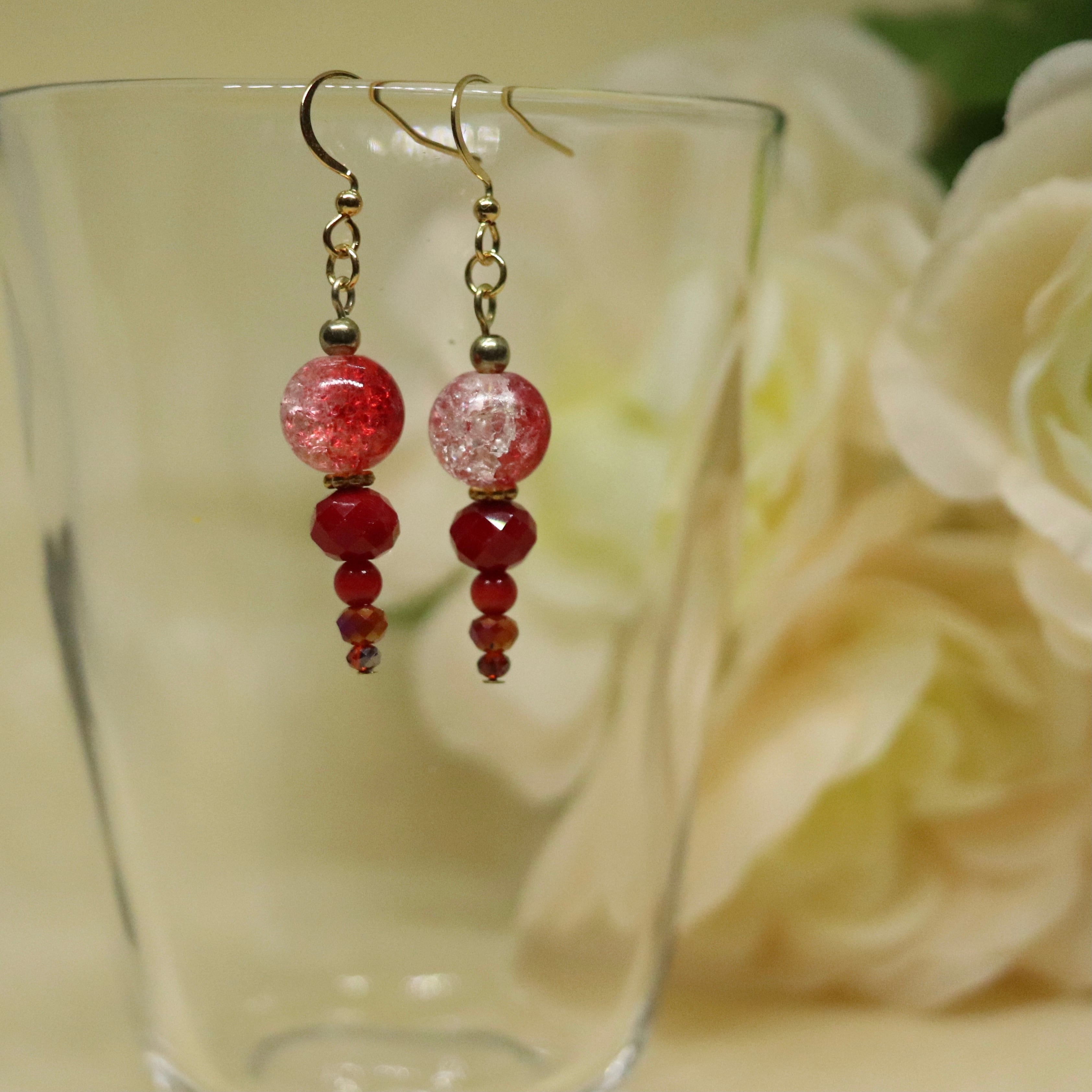 RD03【ピアス・イヤリング】クラックガラス・レッド