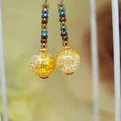 YL17【ピアス・イヤリング】クラックガラス・イエロー・ショート