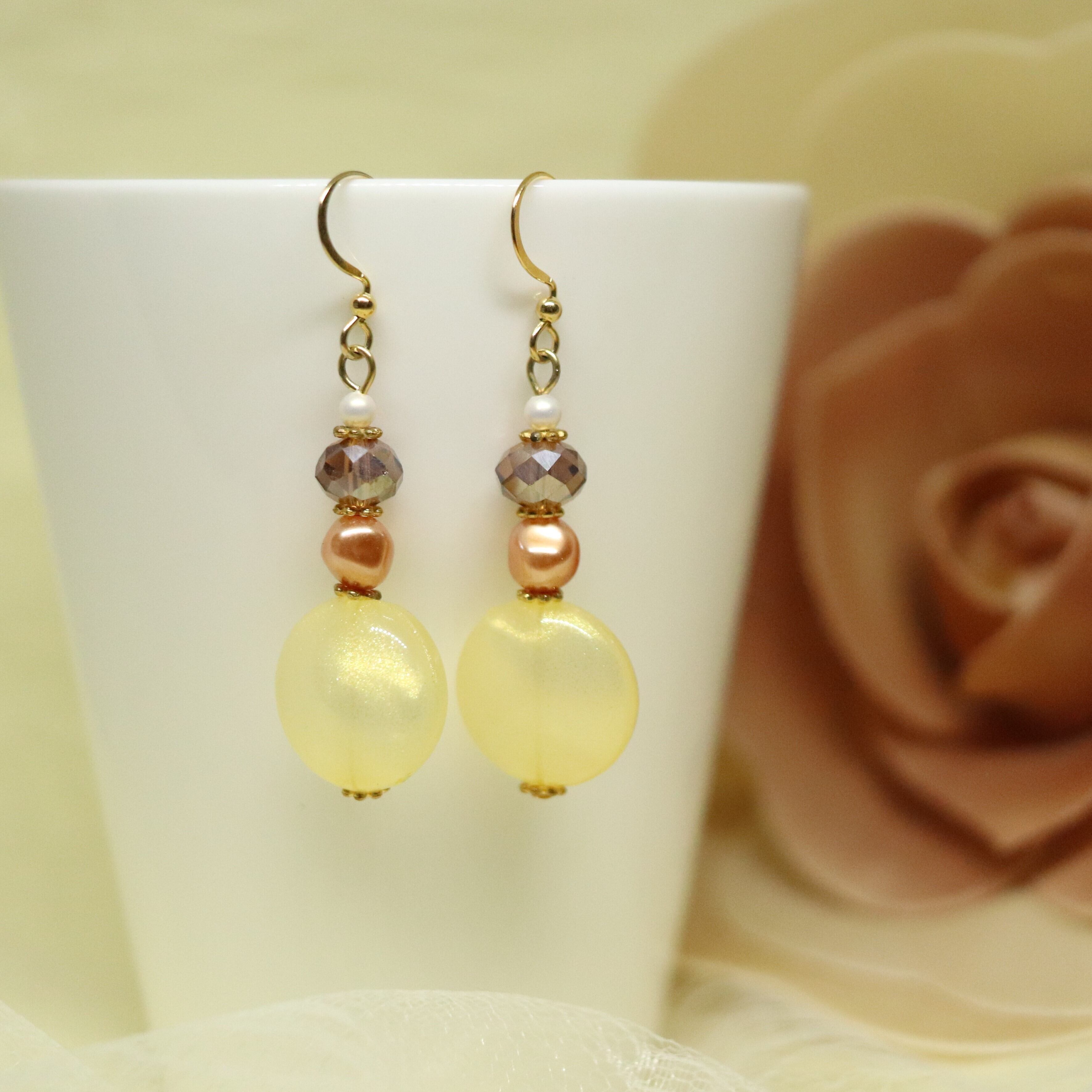 YL20【ピアス・イヤリング】ミルクイエロー・ブラウン