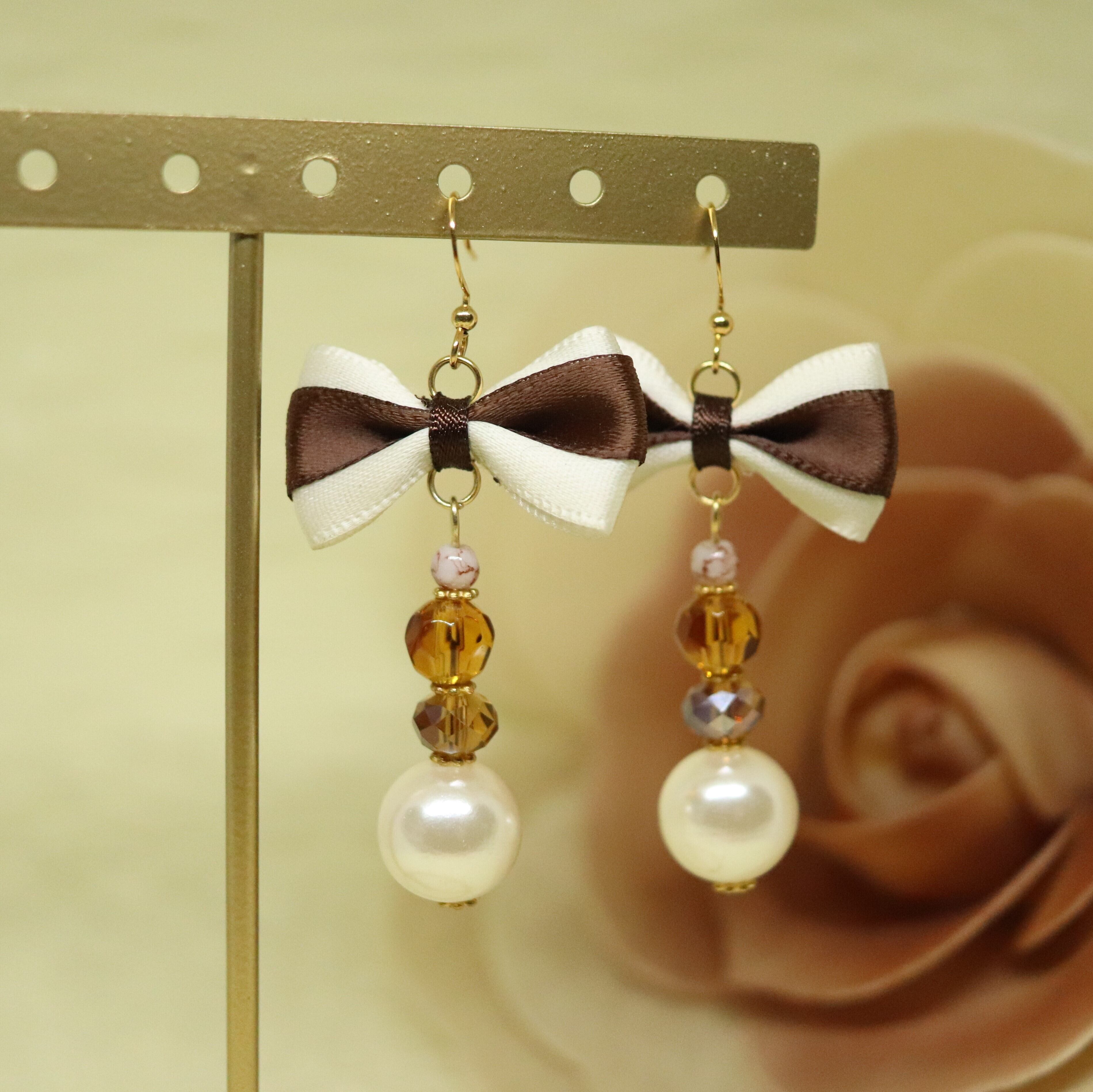【ピアス・イヤリング】リボン・ブラウン[Y28]