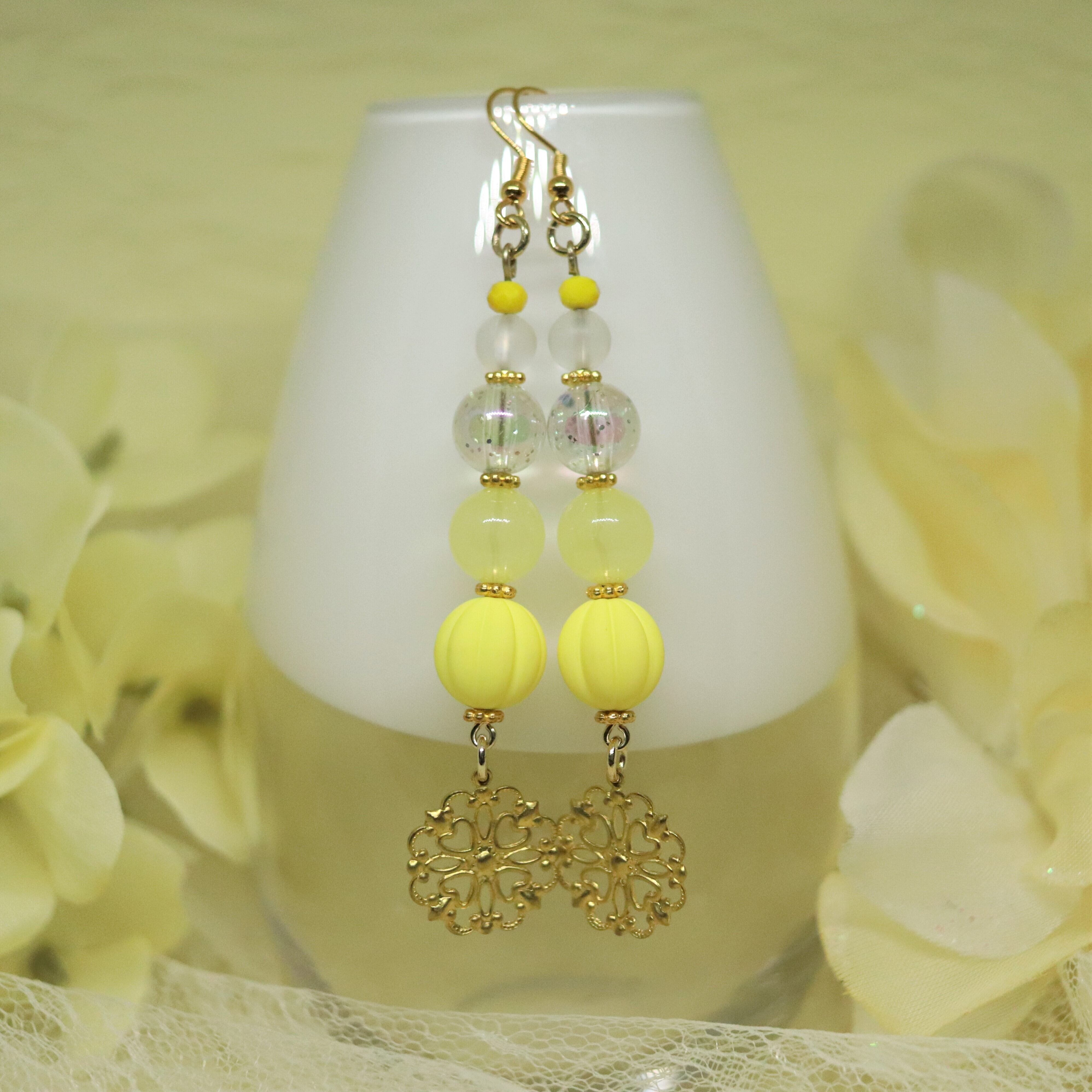 YL19【ピアス・イヤリング】イエロー・ロング・フラワーモチーフ