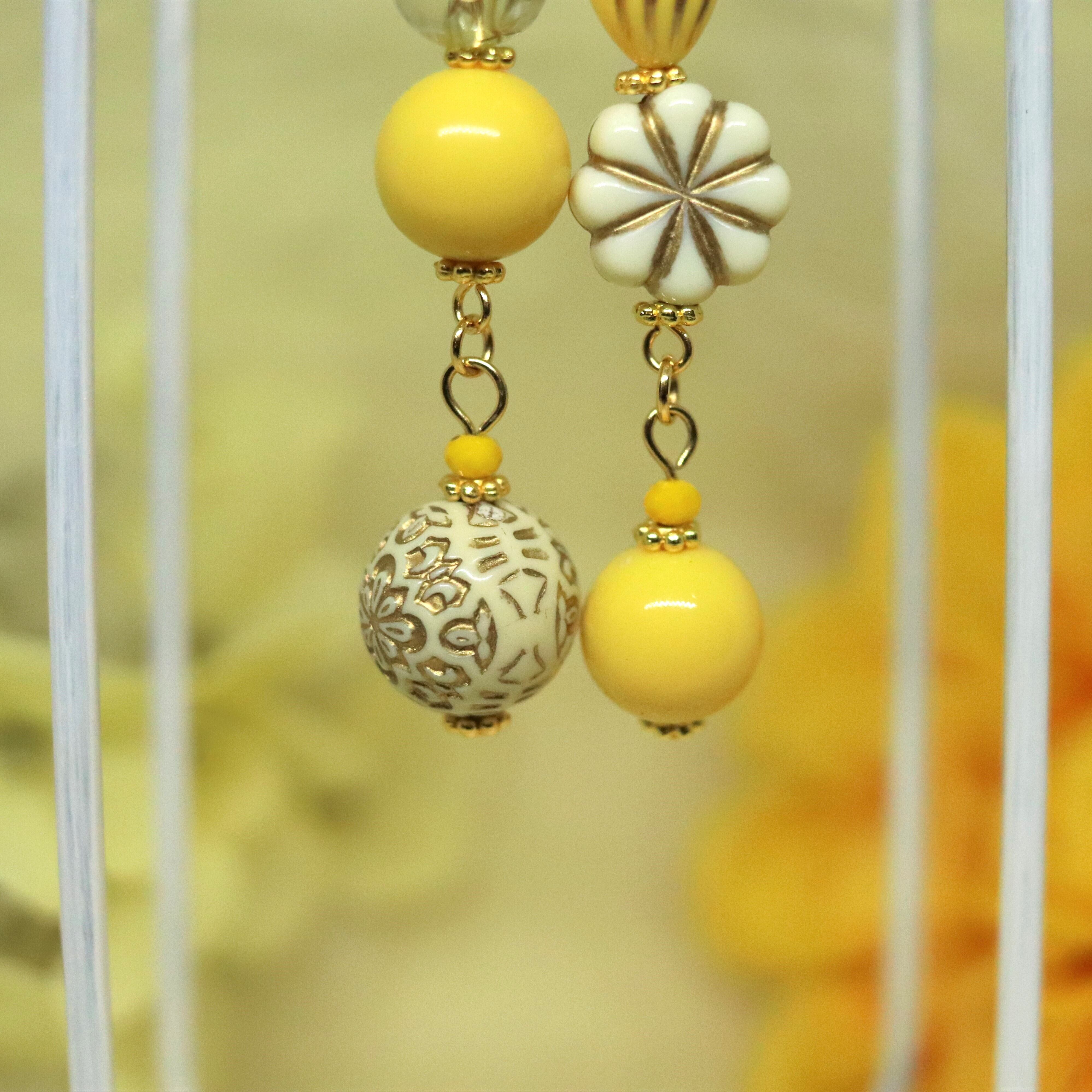 YL14【ピアス・イヤリング】アシンメトリー・イエロー