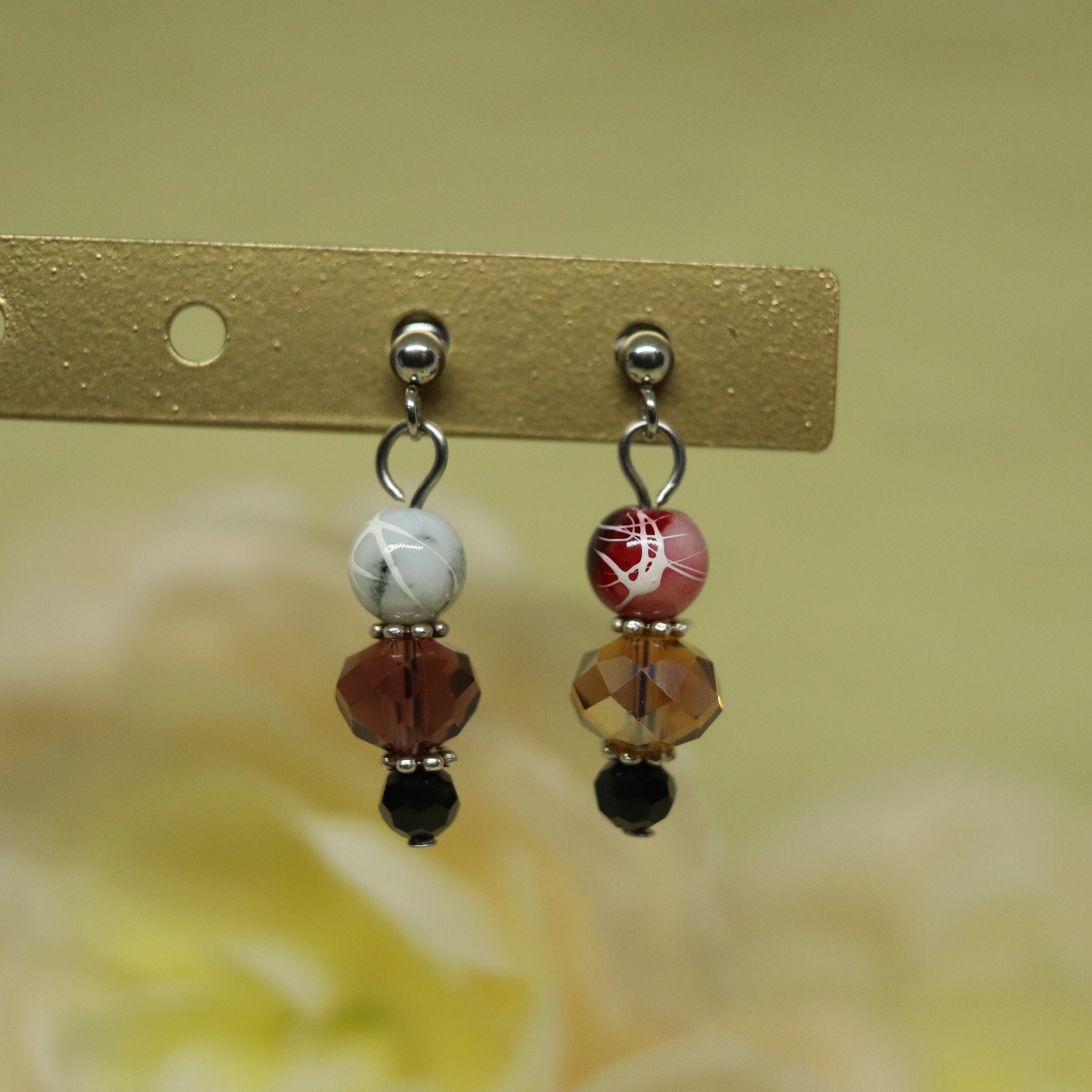 sh09【ピアス・イヤリング】アシンメトリー・マーブル・ホワイト&レッド