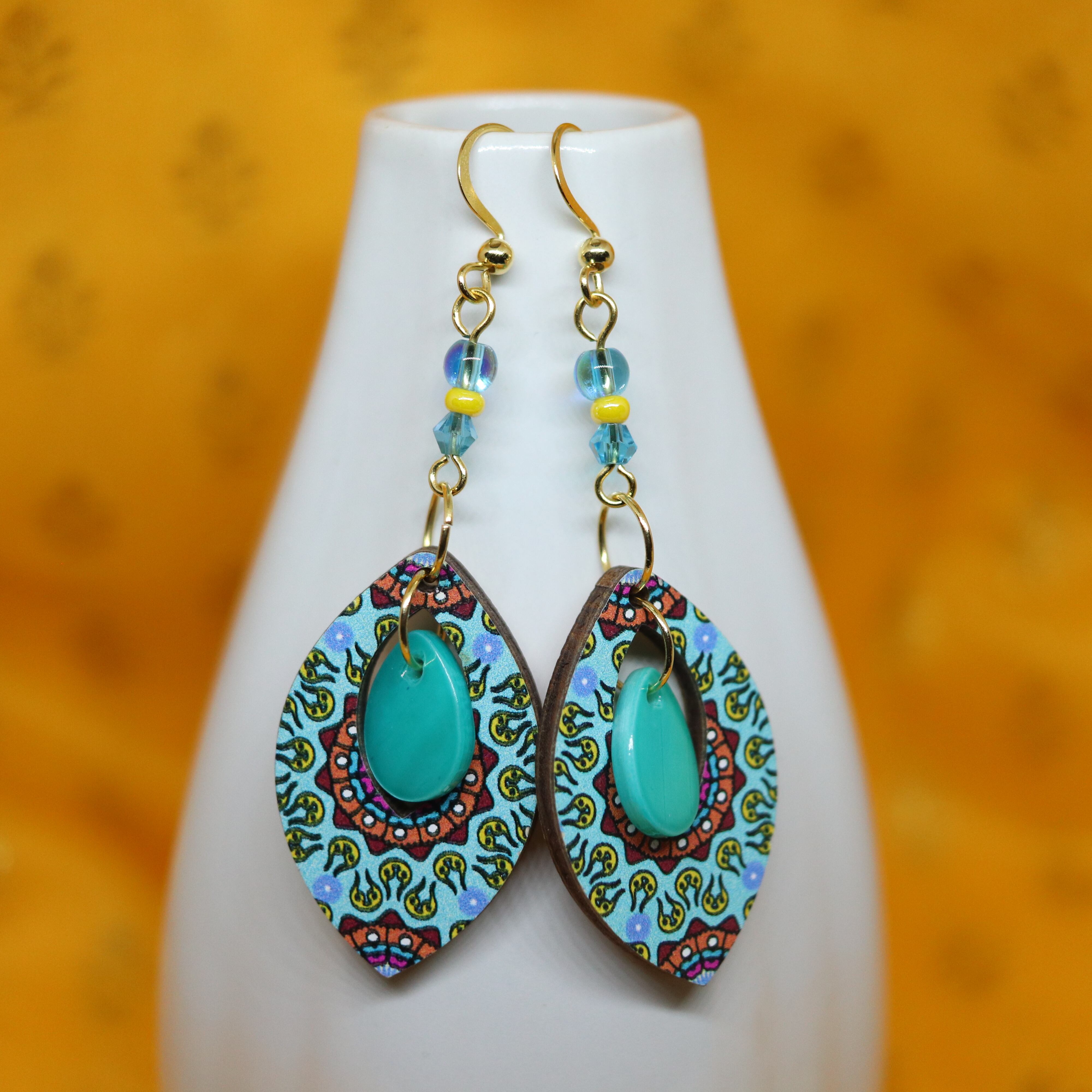 BL13【ピアス・イヤリング】エスニックウッドパーツ・ミントブルー
