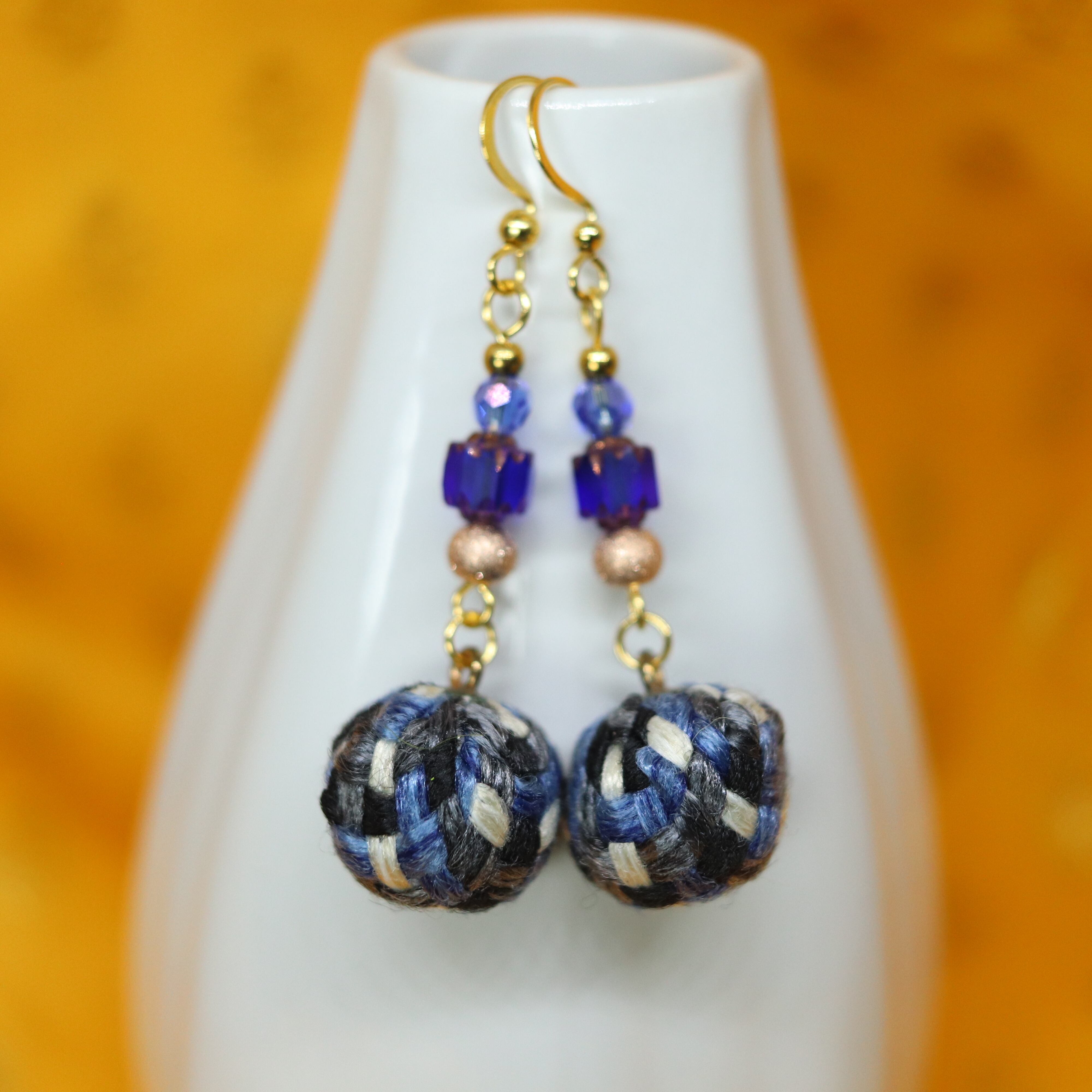 BL21【ピアス・イヤリング】布×ビーズ・ネイビー