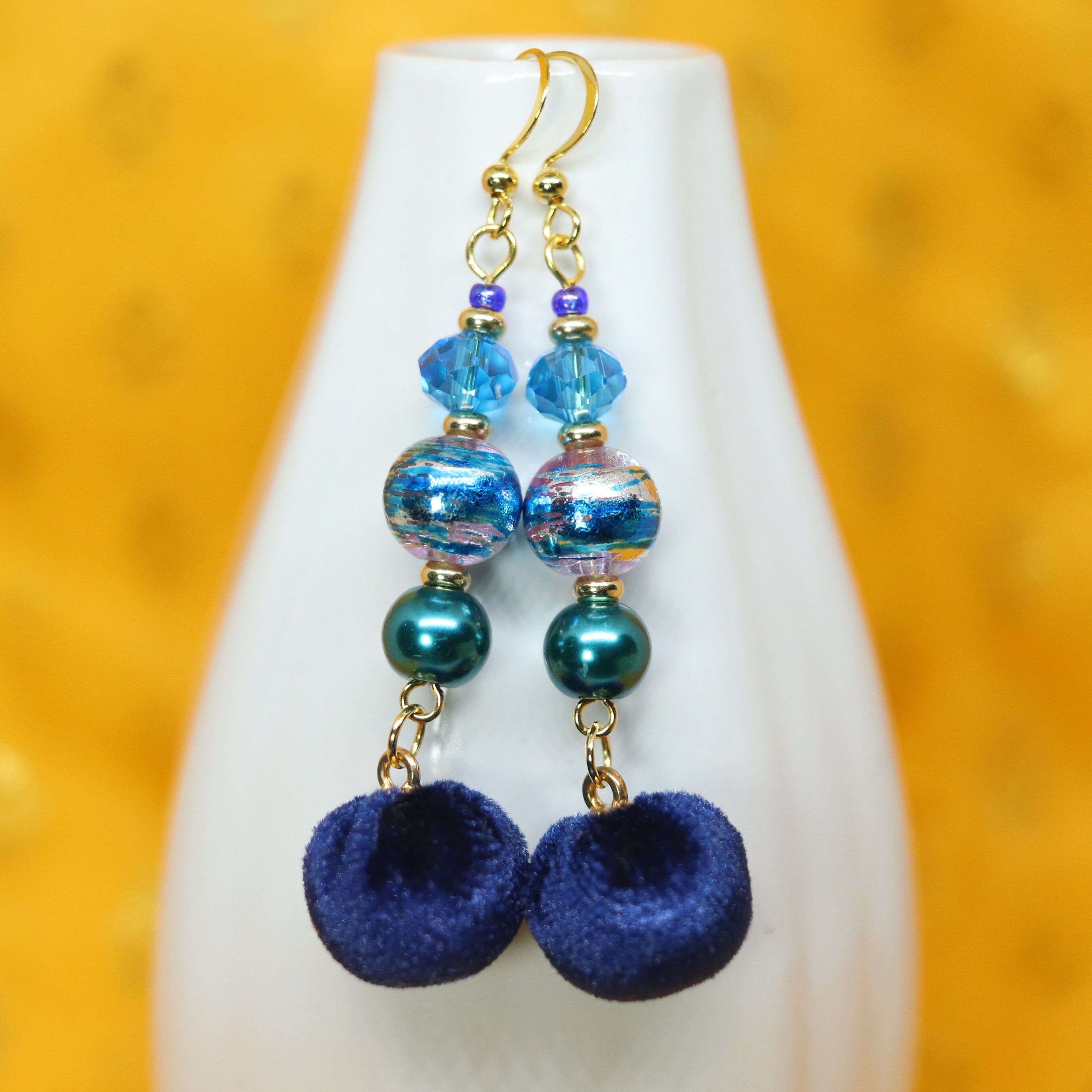 BL31【ピアス・イヤリング】ベロア×ビーズ・ネイビー・ブルー