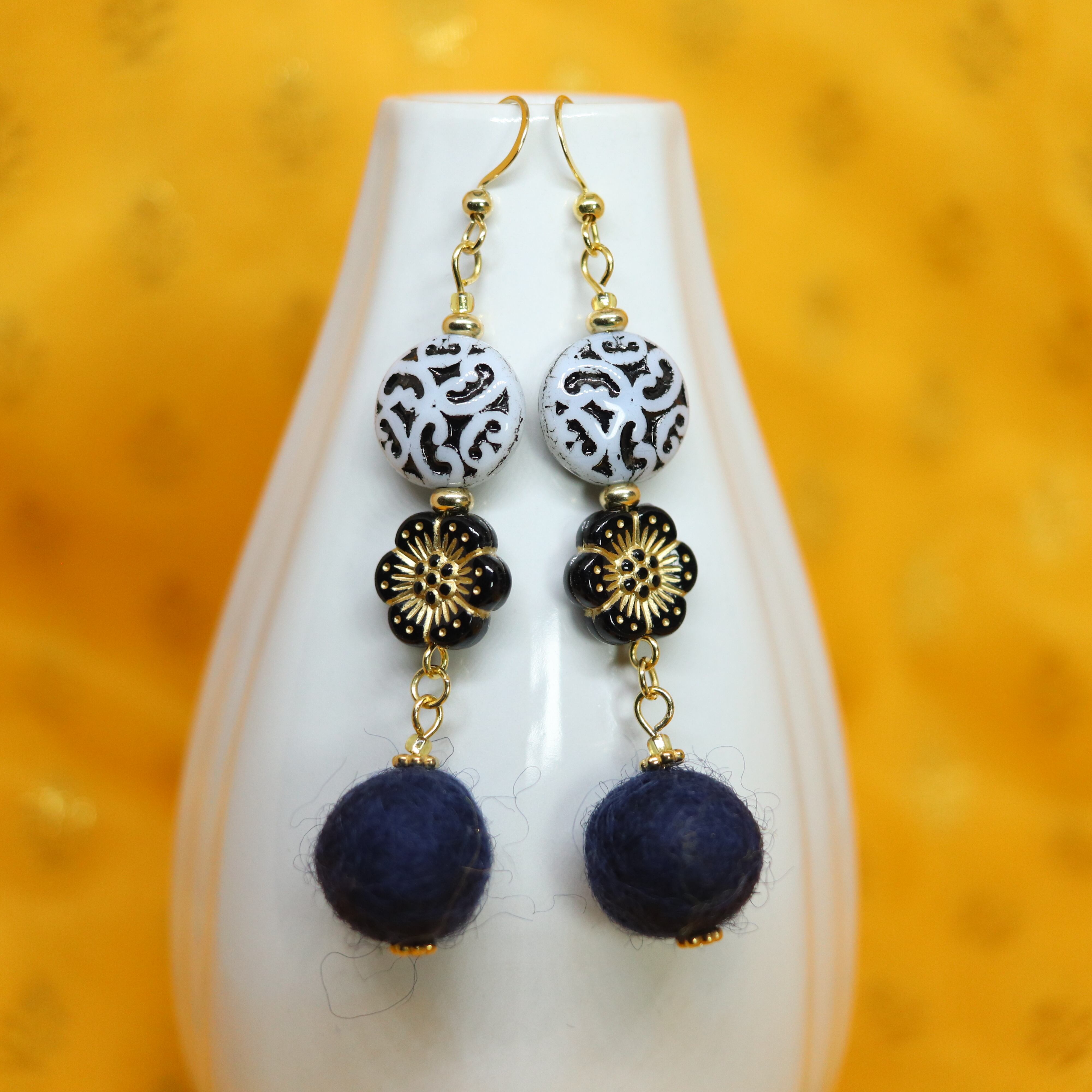 BK14【ピアス・イヤリング】フェルト&ビーズ・ブラック